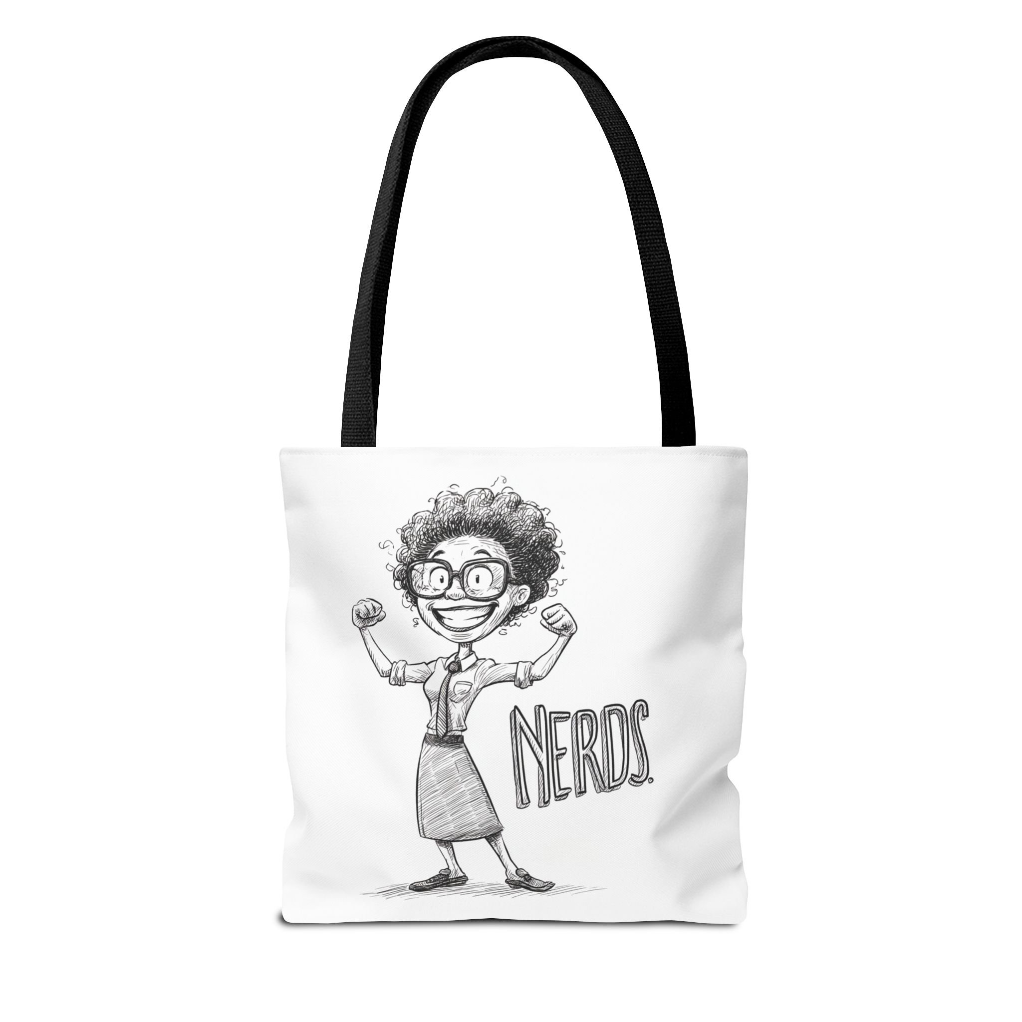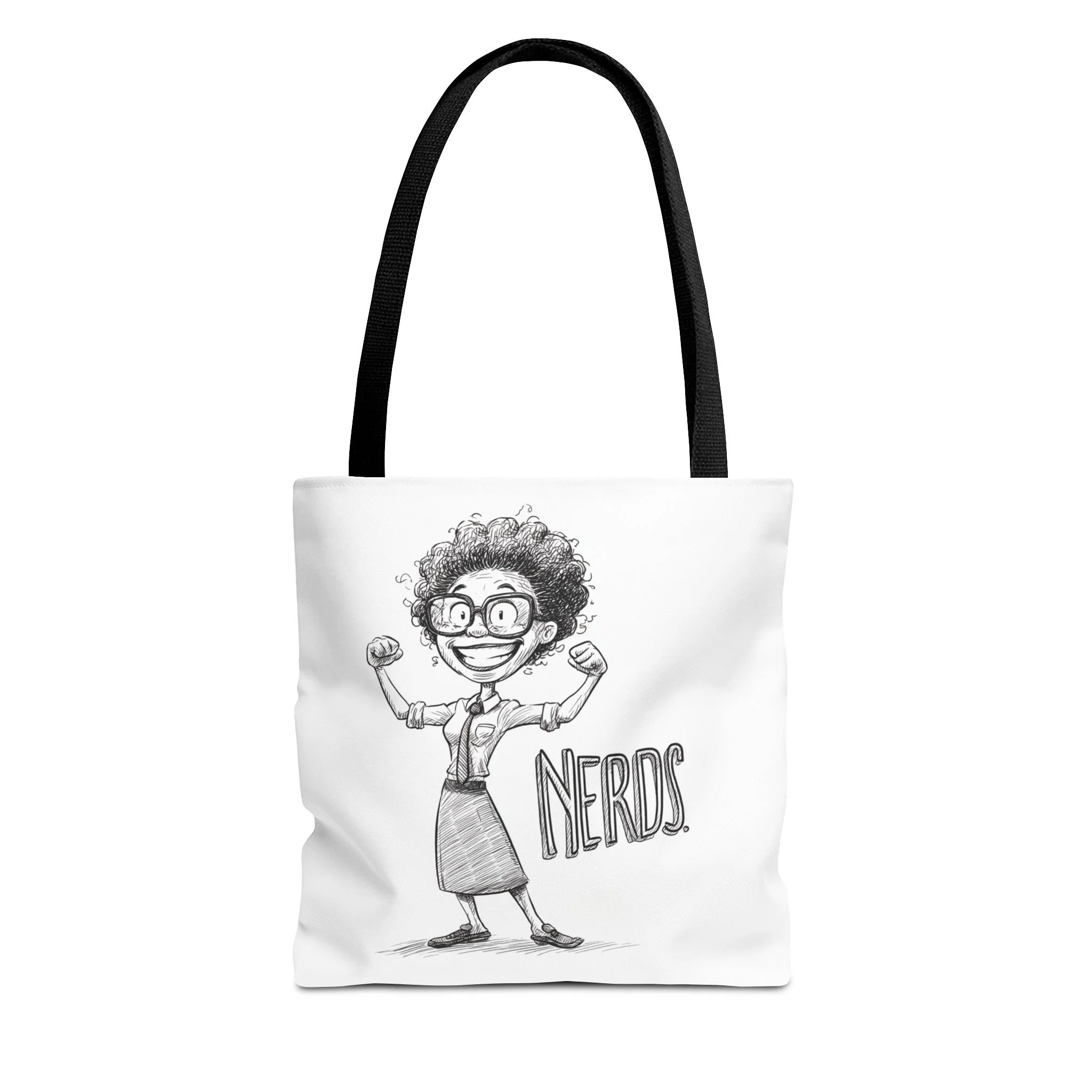 Meet the tote that brings brains, charm, and a flex of personality to your everyday routine. The Nerds Series Classic Sketch Tote Bag features a bold, monochrome illustration of a proud, muscle-flexing “nerd” centered on a crisp white backdrop. Playful hand-drawn lines and subtle shading give the artwork a warm, sketchbook quality, equal parts confident and cheeky.